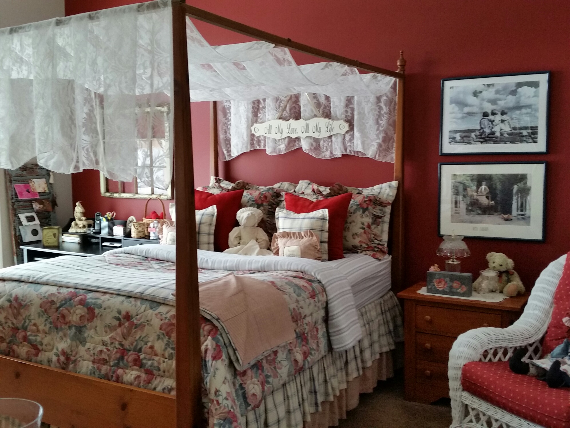 Previous Image Next Image home 33 We decided to paint one wall red and the other tan ~ Sherwin Williams paint ~ Tan is Bittersweet Stem # – SW7536 ~ The red is Cherry Tomato – SW 6864